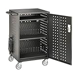 Eighteen padded bays and an extra shelf hold a total of 20 iPads, tablets, or other devices; the padded bays protect the electronics against potential damage. Easily access the tablets from the back or front of the storage cart. The front and back doors feature key-locking systems for security.