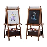 Storage cups and the two large bins offer lots of room to store toys, supplies, books, and other essential items your toddler likes. The apron and other accessories will inspire any toddler to explore their creative imaginations. Included in the package are numbers, animals, crystal shapes, and alphabet letter magnets. Six anti-dust hexagon-designed chalks are easy to hold in small hands, and the wrap-paper keeps little hands clean. A detachable magnetic eraser wipes the boards clean after use.